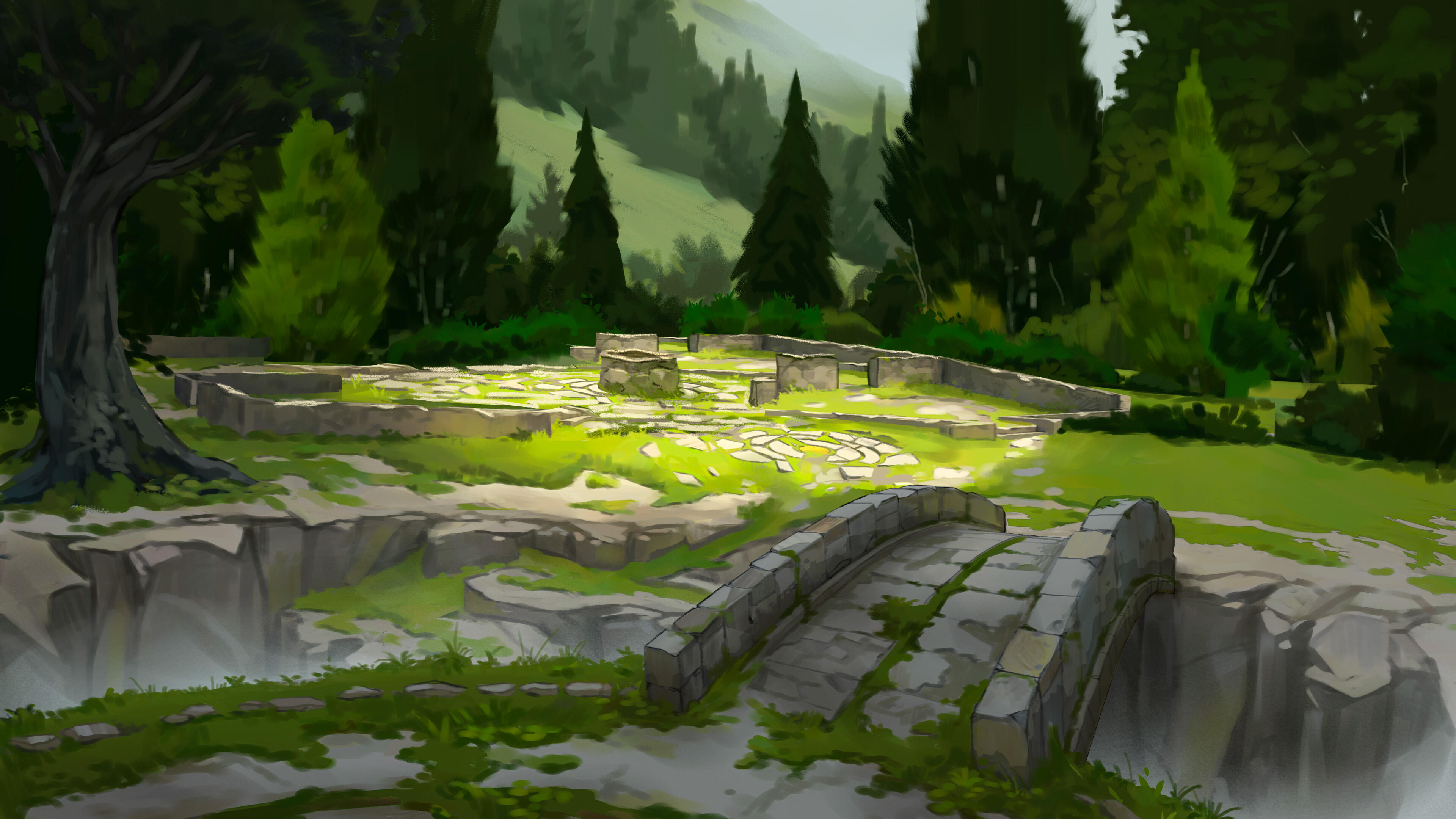 Bloomridge is Vernalia’s administrative, academic, and commercial centre, built where several major rivers converge. The city spreads across gentle hills and terraced streets, with residential areas, markets, workshops, and cultivated gardens interwoven throughout rather than separated into strict districts. Paths, bridges, and waterways form the main routes of movement, allowing goods, people, and information to pass easily between different parts of the city.