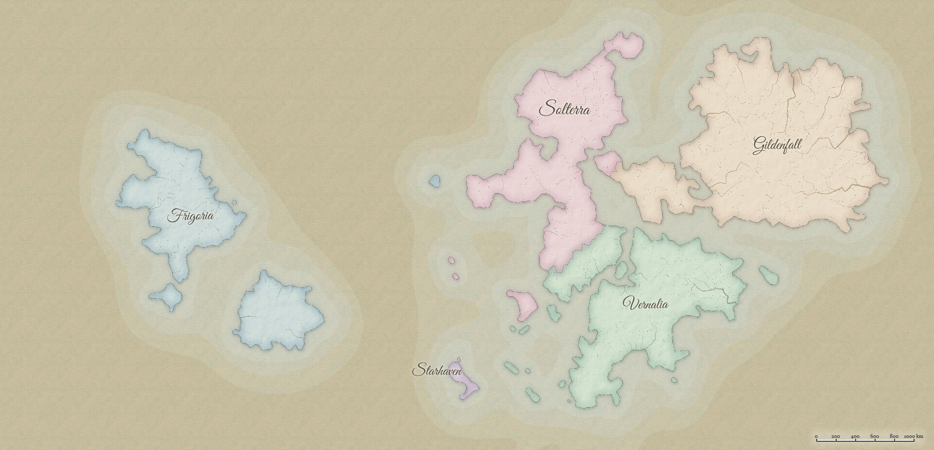 Starhaven exists within the wider world of Mythria, a land shaped by diverse regions, cultures, and histories. From Vernalia’s river valleys to Solterra’s heat-worn coasts, Gildenfall’s working lands, and Frigoria’s frozen reaches, each region leaves its mark on the people who come from it.While Starhaven serves as a home and meeting place, the wider world continues to shape events, characters, and long-term plots on the island. Where your character comes from matters - and those roots often find their way back into the stories told here.